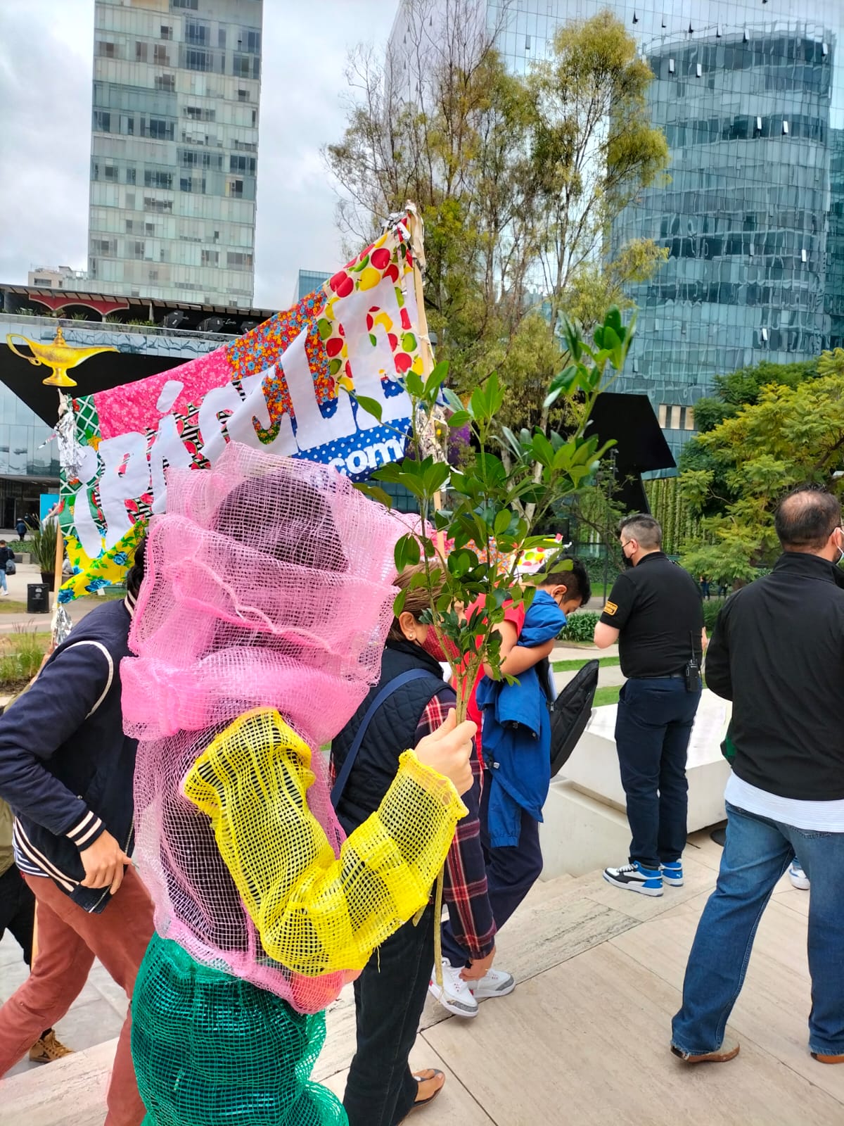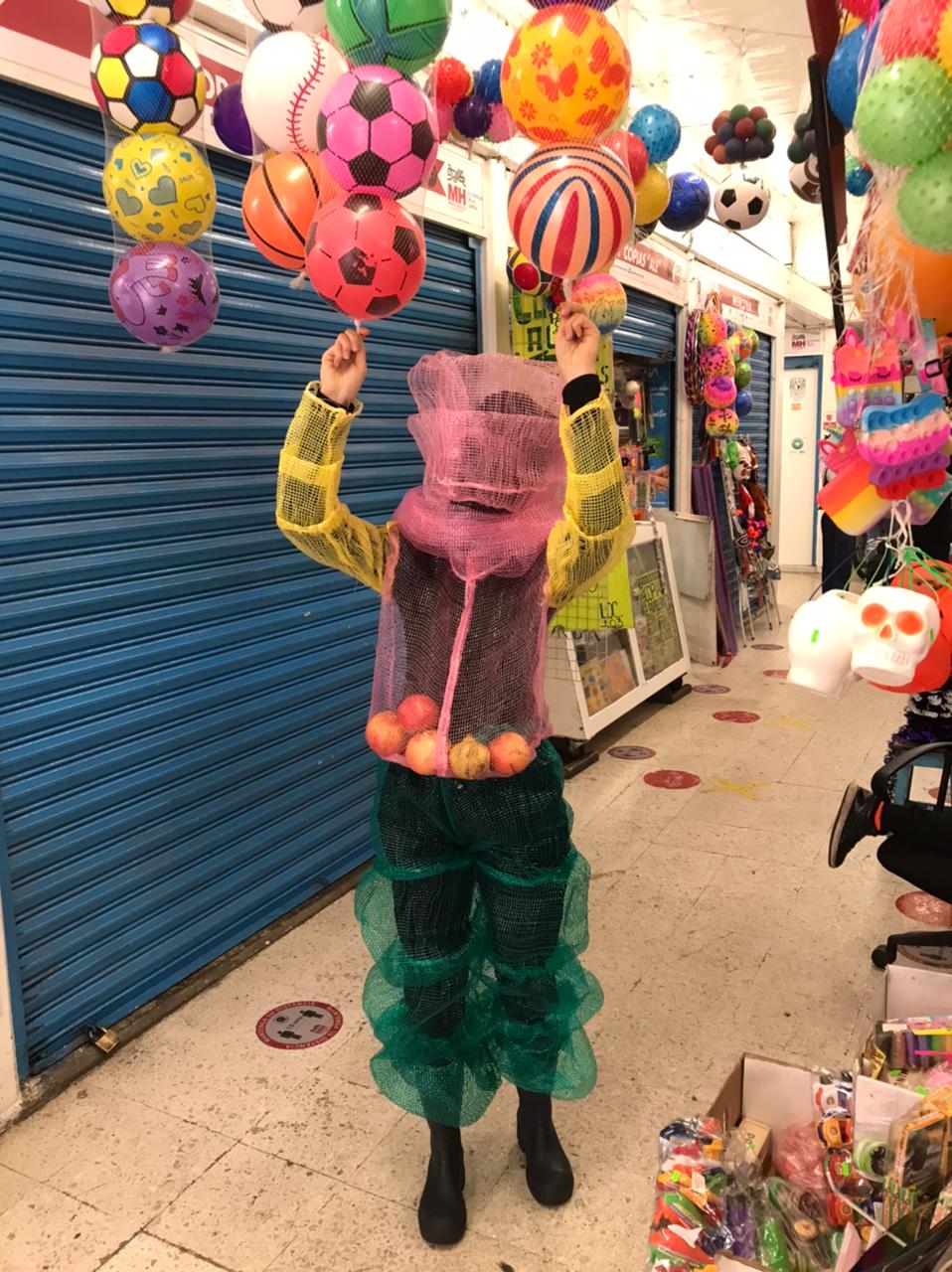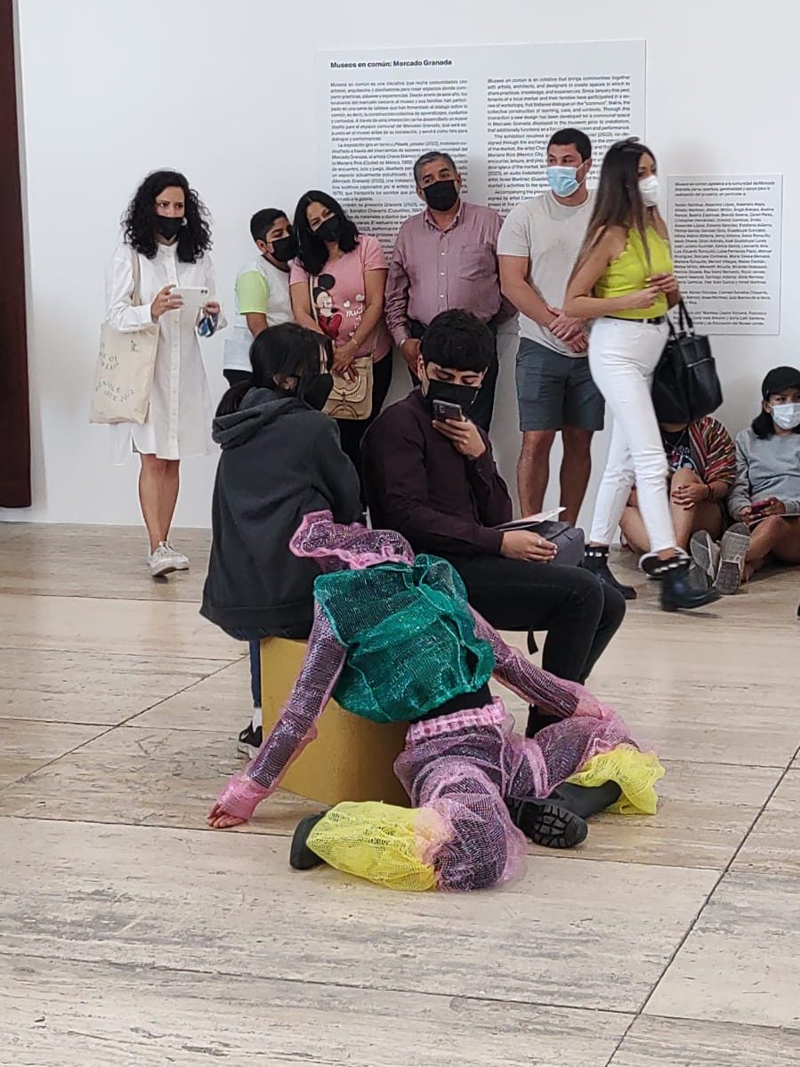 Junto con Carmen Serratos se desarrolla un personaje llamado Granada que surge de las actividades con lxs niñxs del mercado durante esos meses. El cual aparece desde la celebración, caminata y eventos de convivencia que se realizaron para dar inicio a la exposición Museos en Común, llevando el mobiliario del mercado al Museo, el cual posteriormente regresará al mercado.