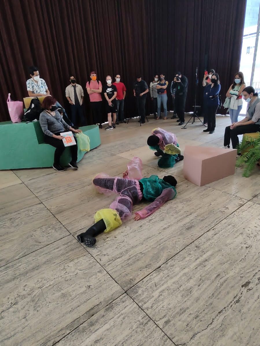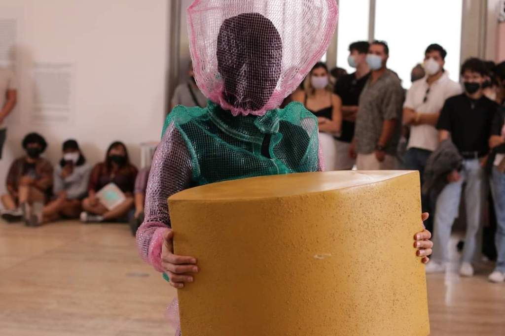 El personaje GRANADA habitó la galería 1 durante el mes de octubre que se lleva a cabo la exposición en el Museo JUMEX proponiendo una experiencia con dinámicas lúdicas y sensoriales a partir del movimiento y en relación con las piezas de la exposición, el público presente y las características espaciales de la galería 1.