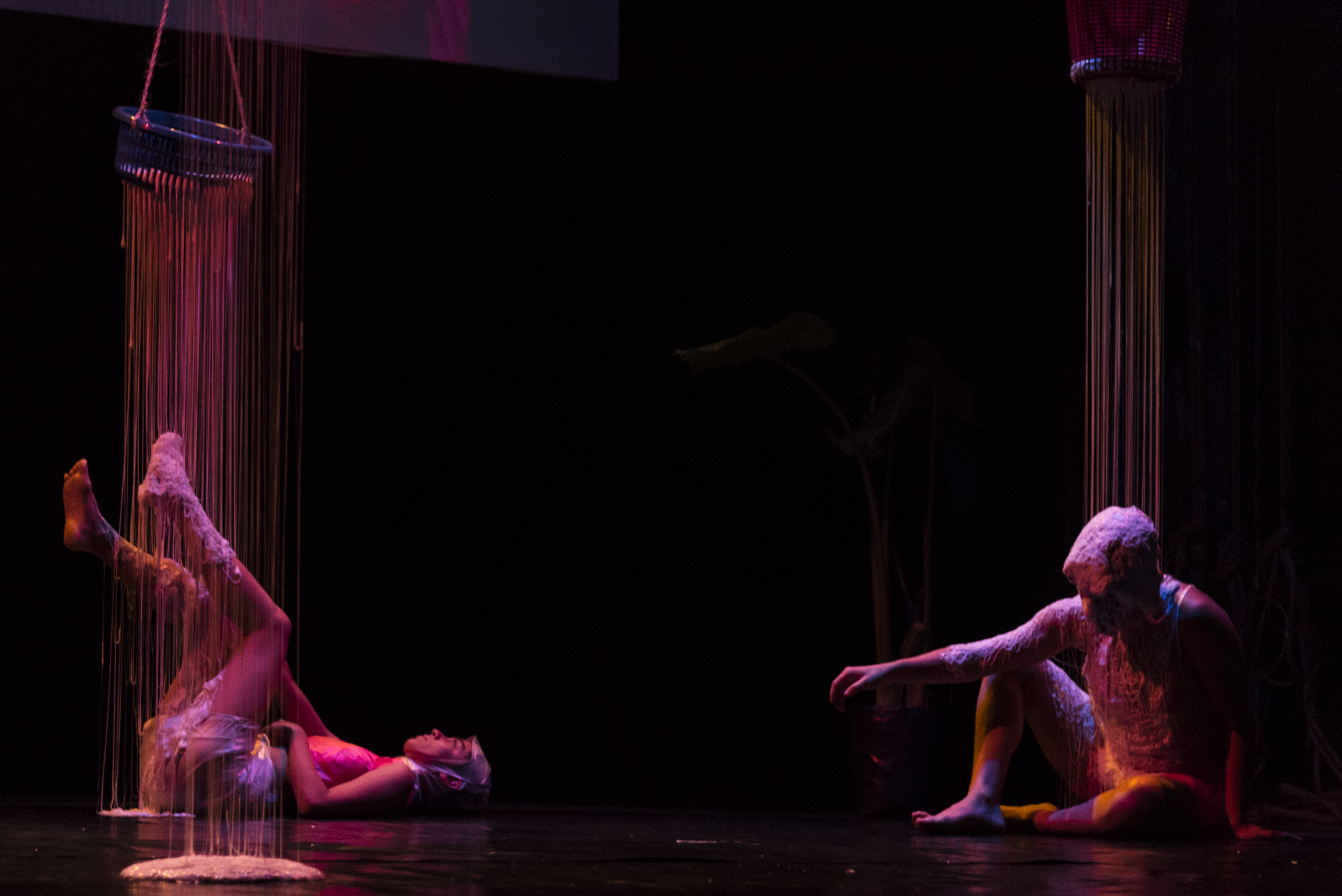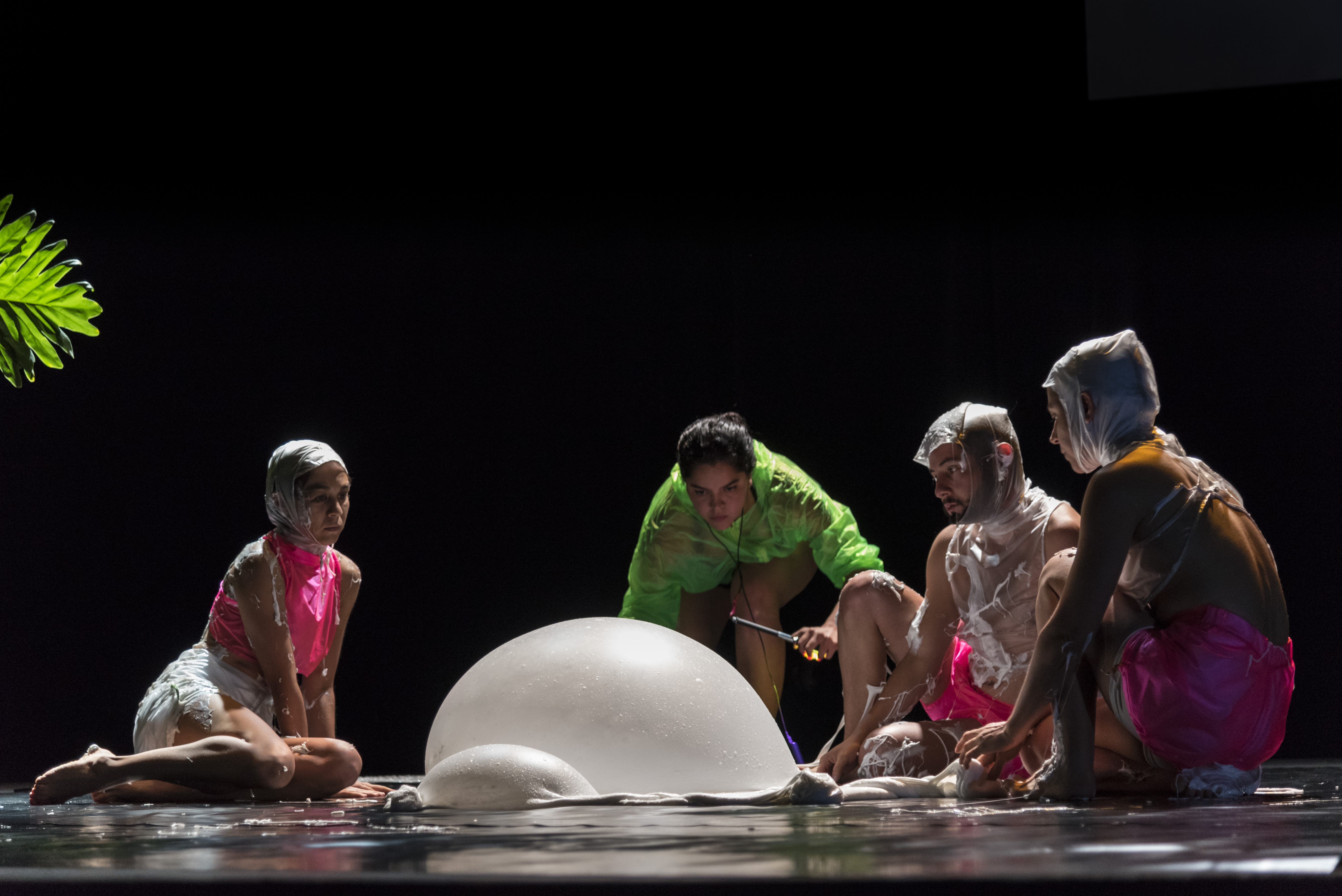Asimismo, al ser un material poco catalogable, el slime habilita la reflexión práctica sobre las dicotomías de lo orgánico-inorgánico, vivo-no vivo, humano-no humano, tecnología-naturaleza. Por lo que para profundizar en estas relaciones, diversos elementos, además de nuestros cuerpos, son puestos en relación durante la pieza.